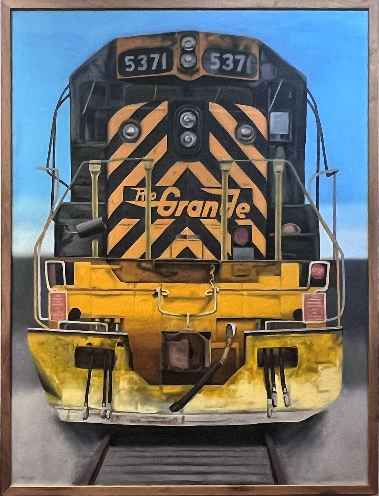 Growing up in the west, I have a fondness for expansive views into the landscape. I like to paint on large canvases in acrylics with splashes and gesture brushwork. Some of my paintings have the guiding lines that my drafting-trained mind likes to impose, but later the Muse takes over and this is when everything seems to sparkle. I try to let the landscape/ space or object speak to me. I am drawn to most things Americana, especially when it comes to the railroad.